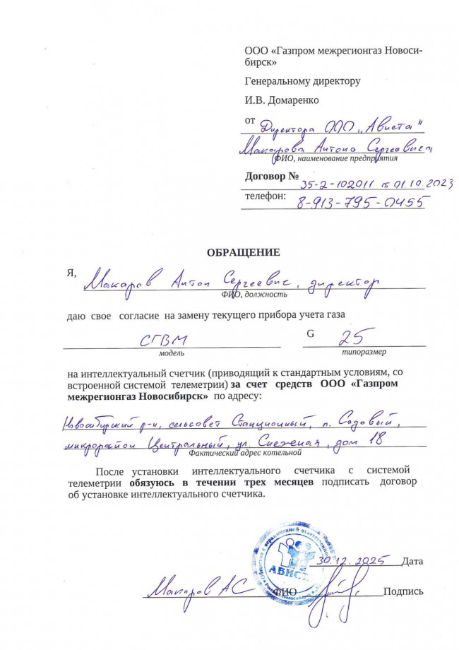 в целях экономии денежных средств мы вступили в программу замены приборов учета за счет Газпрома.