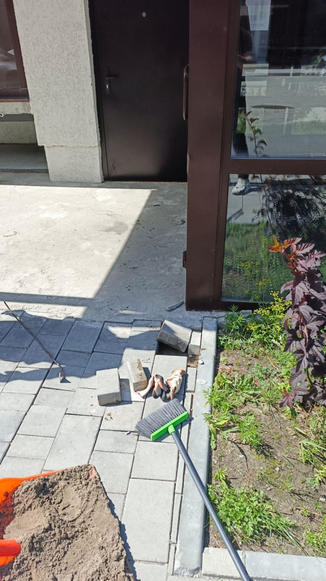 - Установлены декоративные вентеляционные решетки на сбросники воздуха на 4 этажах МКД - Востановлен отсев размытый после залповых дождей. - Выполнена привентивный ремонт брусчатки