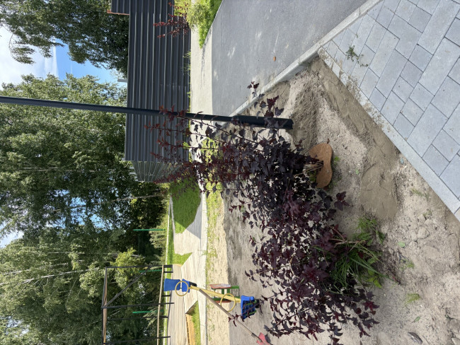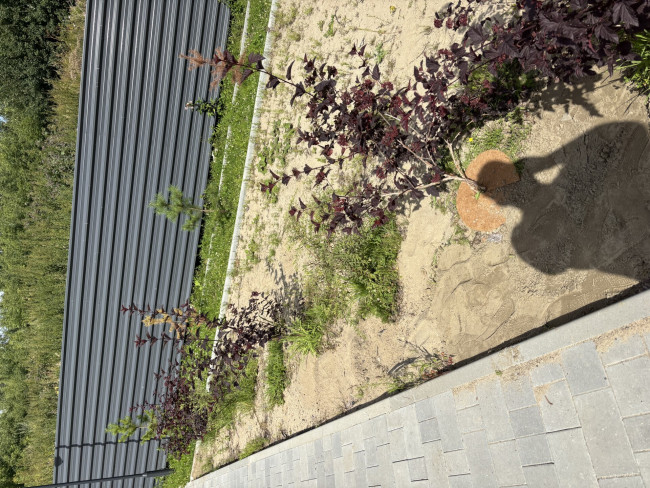 Так же локальновыполнена защита кустарников кокосовой стружкой. В случае положительного эффекта, все кустарники будут защищены таким образом.