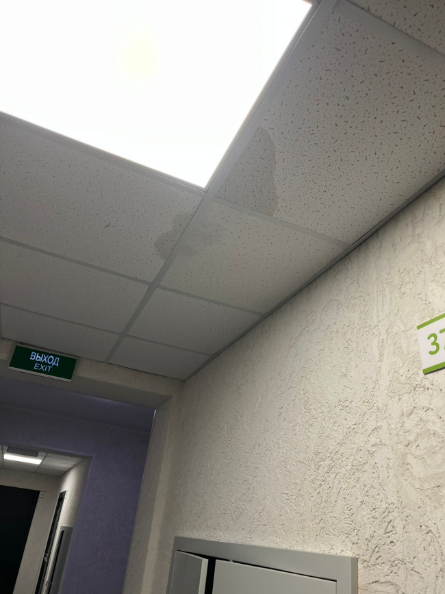 Выполнена замена потолочной плитки в доме 18 после аварии.