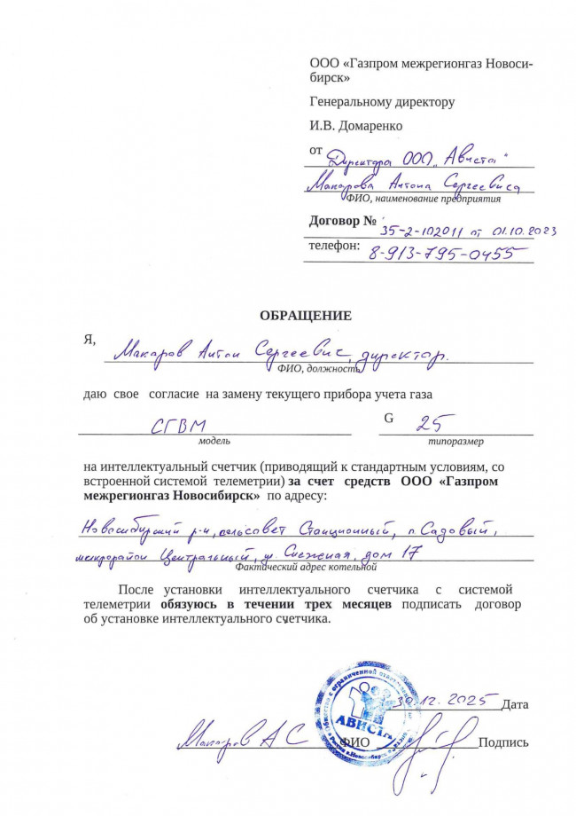 в целях экономии денежных средств мы вступили в программу замены приборов учета за счет Газпрома.